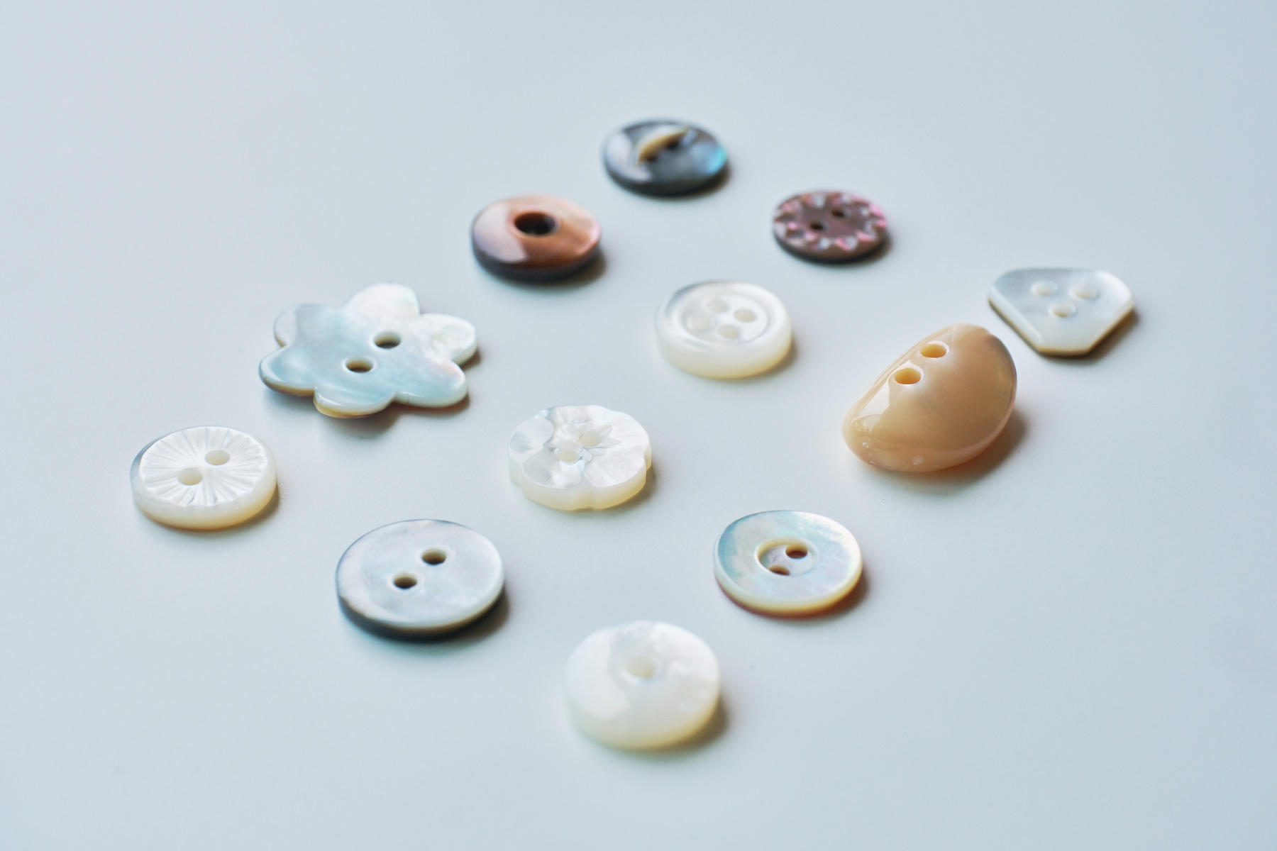 高瀬貝を素材とした、直径10mmの貝ボタン